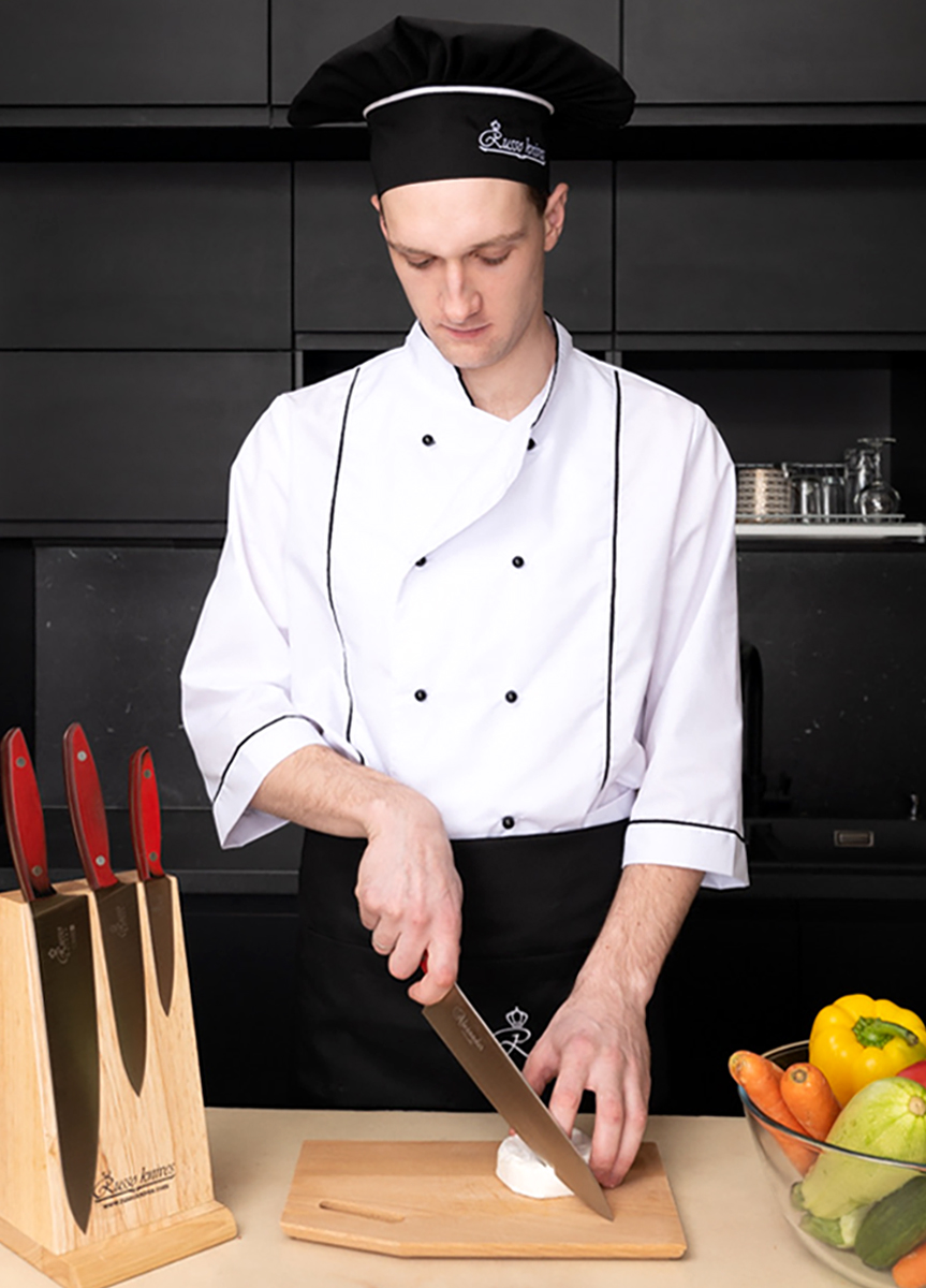 Взяли на замену старым ножам, с которыми начинали наше кафе, друг закупил тогда ноунэйм какой-то. Небо и земля! Теперь думаю зачем мы столько мучались и резали неудобными и не держащими заточку ножами?! Alexander M настолько удобен, что пришлось весь парк ножей ими заменить. Теперь ждем ваши топорики, видели в инстаграме, а купить негде.